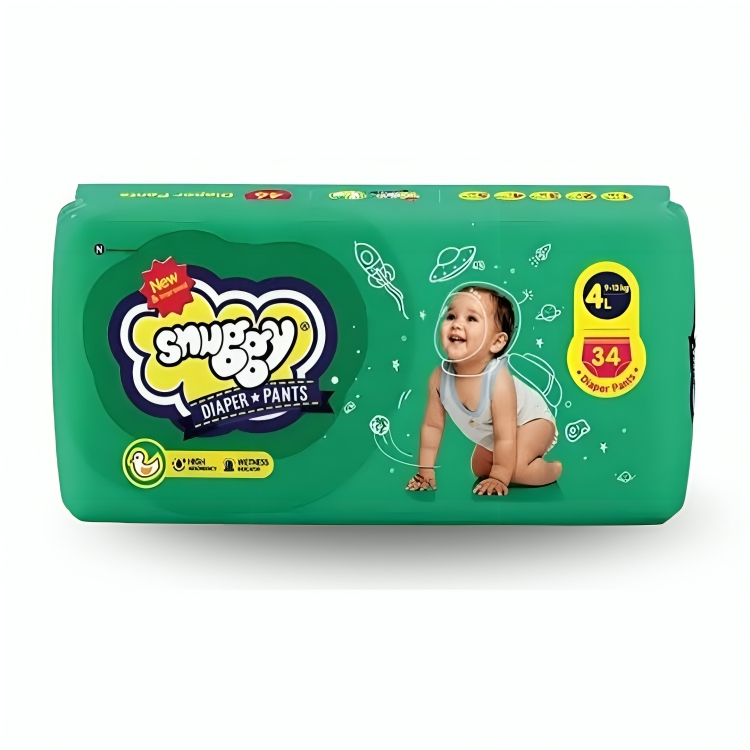 Snuggy Diaper Pants | Large size (4L) | 34 Count | 9-13 kg | High Absorbency | Wetness Lock Technology.