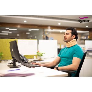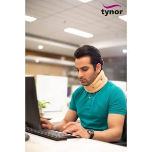 The Tynor Cervical Collar Soft with Support features high-density foam with cotton stockinet, offering effective immobilization, support, cushioning, and comfort for the user.